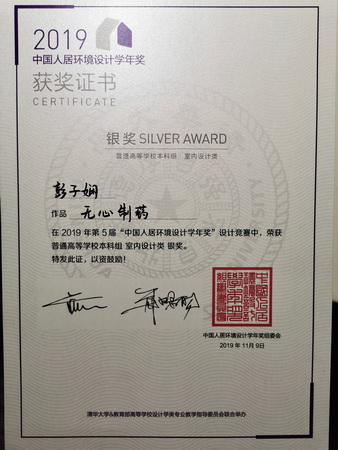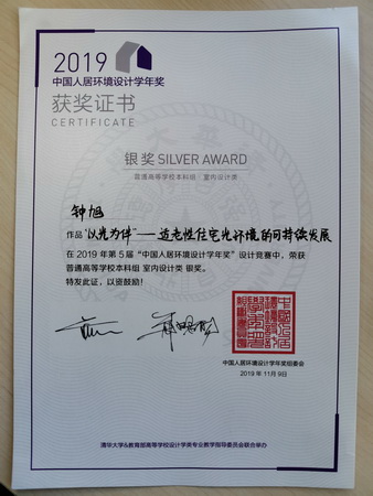 11月11日,第五届中国人居环境设计学年奖在江南大学举办,在威尼斯官网艺术学院孔帅老师的指导下,15级环境设计专业学生彭子娴、钟旭的参赛作品从来自500余所院校的1952组作品中脱颖而出,均斩获2019年第五届中国人居环境设计学年奖室内设计方向银奖,威尼斯7798cc荣获最佳组织奖。