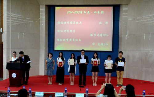 随后,在热烈融洽、积极向上的气氛中,针对本学年以来学生个人和集体在学风建设、科研竞赛、文体竞赛、班级建设、五四评优工作等方面取得的优异成绩进行了表彰,到场嘉宾老师和学生组织领导骨干为优秀个人和先进集体颁发了获奖证书和奖品。