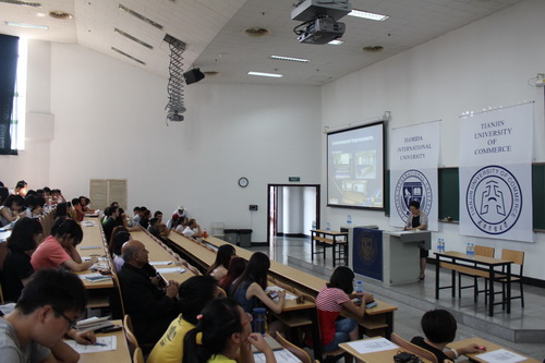 8 月 25 日 是 TUC-FIU 合作学院高年级学生开学的前一天,中美双方共同为为刚刚进入专业课学习阶段的全体大三学生举行了辅导讲座。